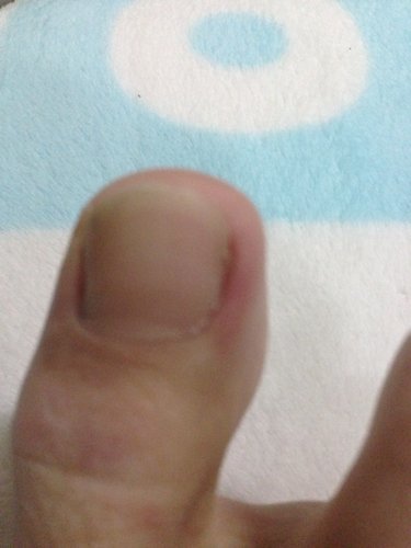 病情分析: 你好这位朋友,看了照片,是甲沟炎的现象,就会出现局部红肿、疼痛等症状,可以对症治疗。 指导意见: 根据你现在的情况,建议局部涂抹百多邦软膏,在医生的指导下服用甲硝唑片、阿奇霉素分散片按说明服用,注意局部的卫生,避免挤压,希望我的回复能够帮助你。