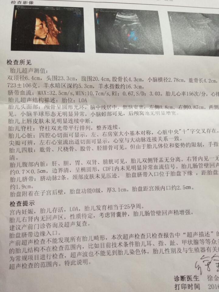 三维彩超没通过,胎儿右肾内无回声区,性质待定,考虑肾囊肿,胎儿肠管壁回声稍增强…现在特别担心,有