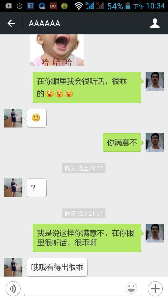 认识个女孩子,不知道她对我有感觉没?求大神分析分析 点击展开 匿名用户 2015-06-04 22:36 满意回答 这女孩子对你还是很有好感的。 帅哥希望你勇敢的去追求啊 匿名用户 2015-06-04 22:38 宝宝知道提示您:回答为网友贡献,仅供参考。 为您推荐: 其他回答 别不爱听哈,估计可能性不大呀,别人都是爱理不理的呀。 匿名用户 2015-06-04 22:53 这都看不出来?人都不想理你,自作多情 匿名用户 2015-06-04 22:49 我觉得这只是正常的微信聊天而已 匿名用户 2015-06-04 22:47 没有 匿名用户 2015-06-04 22:46 加载更多 相关问题 认识一个女孩子,前几天刚订婚了,只想我做情人,可是我发现自己很爱她,求大神帮助分析下 女生和别人说我像小孩,什么意思?女孩子来回答啊!大神们帮帮忙 大人为什么喜欢生男孩子,可男孩子却喜欢女孩子呢拜托各位大神