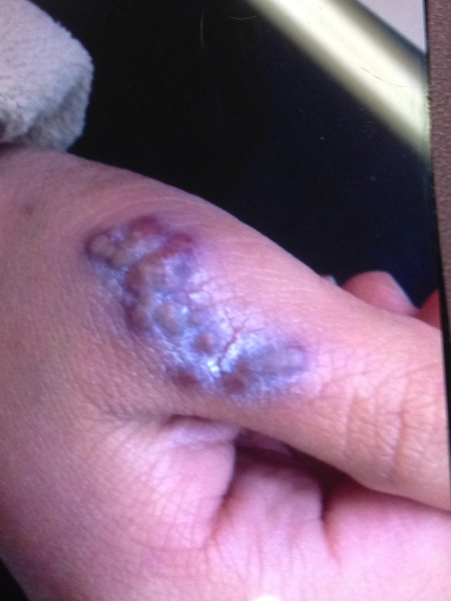 小孩疱疹刚开始是半透明的、小小的后来变得又大又黑、会好吗 点击展开 匿名用户 2013-12-21 14:39 为您推荐: 其他回答 病情分析: 疱疹是病毒感染.一般是需要积极抗病毒治疗的, 指导意见: 常用的药物是阿昔洛韦,还可配合用些清热解毒的中药。 种凌丝_IyuJ 2013-12-21 14:42 相关问题 孩子嘴上疱疹,长大会好吗 孕妇嘴巴周围疱疹越来越多多久会好啊
