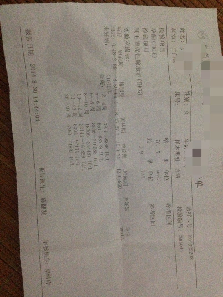 前两天医生说我怀孕了 今天去抽血拿结果说我孩子流了 帮我看看单是不是孩子没了