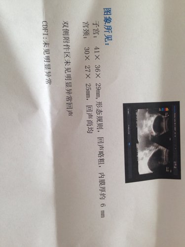 前两个月因为月经不调做过一次B超,说是卵巢双侧有数枚小囊性暗区,这张是今天的B超,没有小囊性暗区了 前两个月因为月经不调做过一次B超,说是卵巢双侧有数枚小囊性暗区,这张是今天的B超,没有小囊性暗区了,我想问问这份B超有什么问题么? 点击展开 匿名用户 2014-05-18 15:54 为您推荐: 其他回答 病情分析: 你的彩超提示是很正常的表现 指导意见: 上次有囊肿说明没有排卵,所以才月经紊乱的,不可忽视的,定期检查看。 匿名用户 2014-05-18 16:11 相关问题 1 怀孕7周,B超检查左侧卵巢见一囊性无回声暗区,大小约 6 0*5 5*5 3cm 想要宝宝,请问有危险吗? 请问月经很不规律怎么测排卵期?去医院检查月经不调,卵巢上有一些小囊泡 中度宫颈糜烂,阴道镜显示,左侧卵巢小囊,宫颈纳囊,盆腔积液 有接触性出血最近想要宝宝 怎样治疗?