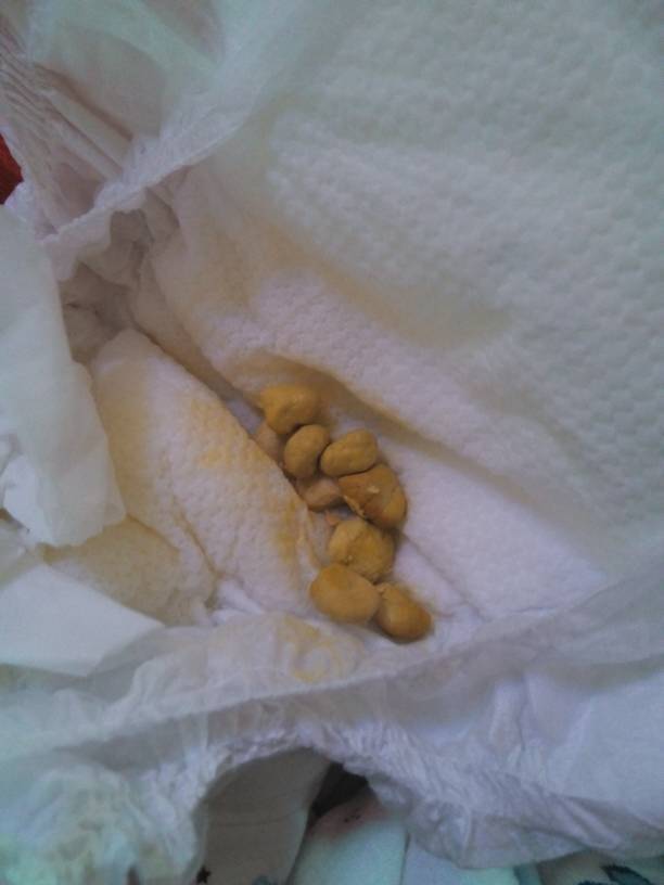 宝宝56天大 是早产儿 这几天宝宝一直拉一粒粒很硬的大便,我给他喝好多水也这样,请问这是怎么回事