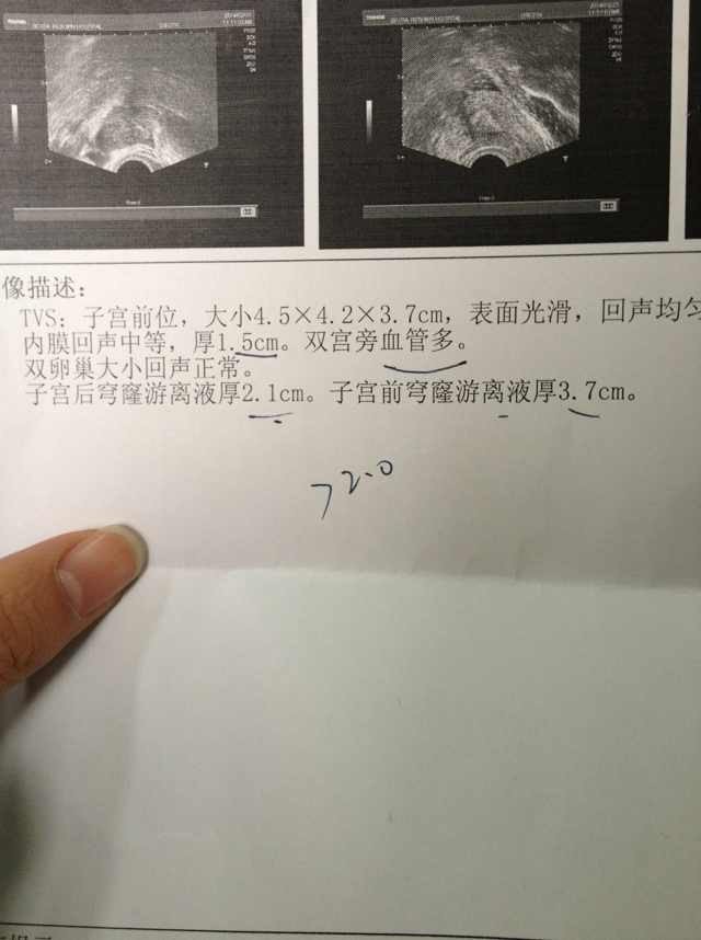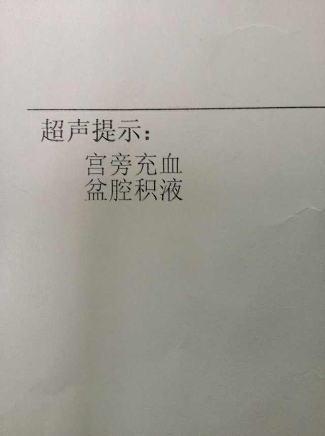 想问一下有没有怀孕,尿检是阴性,但是今天B超检查的结果是宫旁充血,盆腔积液如以下的图片说明