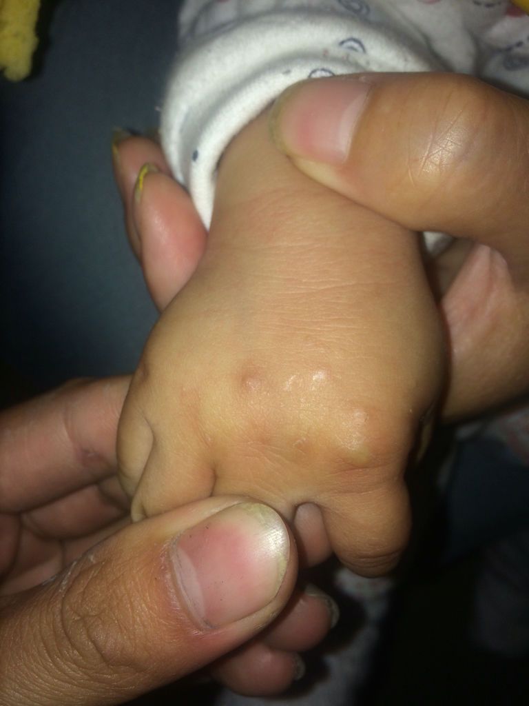 宝宝七个月大,发烧后手上出了东西,现在好了,又出了俩个像烫伤的水泡一样,谁知道这是什么啊 点击展开 匿名用户 2016-06-03 16:05 满意回答 你好,这狼最锅个就是典录,病毒感染引起的。如果宝宝的精叹笼神什么都好吃的也好一般就没有大问题。 ctc200509x 2016-06-05 06:38 宝宝知道提示您:回答为网友贡献,仅供参考。 相关问题 宝宝被烫伤在手上,并起了水泡,该怎么办? 我手上一直长那个小水泡,很痒一直有擦外用药,现在怀孕了还可以擦么?不擦又很痒,擦了又怕对宝宝 宝宝发烧感冒的时候能不能吃西红柿鸡蛋菜水泡馒头