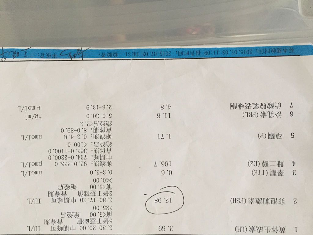 30岁两次月经第三天的性激素六项检测结果不一样 都有问题 看不懂能分析下的吗 点击展开 匿名用户 2015-07-31 15:58 满意回答 你了乔好。您两次检评柴眨测是在同一纪毫个医院查的吗?这之间是否使用过药物治疗? cn#BQkGpVVupQ 2015-07-31 17:26 宝宝知道提示您:回答为网友贡献,仅供参考。 相关问题 月经来第三天检查性激素六项的正常标准是怎么样的 你好,我有多囊卵巢,吃了三个月的达英后月经第三天去抽血查性激素六项的结果如图,年前做了输卵管造影,右侧通畅,左侧通而不畅,都上举,麻烦帮忙看看这种情况还需不需要治疗,备孕两年了都没怀上,想尽快做妈妈挽 30岁月经第三天的性激素六项检测结果 看不懂能帮忙看下吗