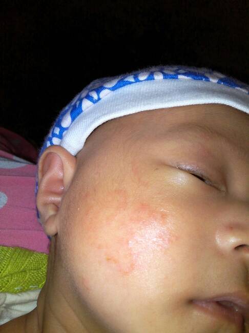 跟我家宝贝儿脸上的挺像的,今天去医院大夫说是湿疹,让抹点这个药