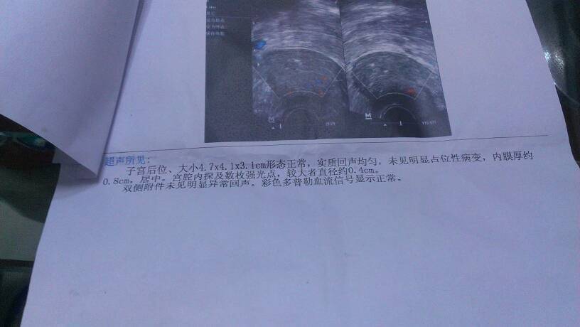 你好。从这个超声检查结果报告单来看,子宫的大小、位置、形态都正常。内膜也正常,双侧附件没有异常情况。唯一的异常就是宫腔内有几个强光点儿,仅仅从这个报告单来看,还不好说究竟是什么,一般来说大多是钙化点儿,如果没有症状一般不用在意,如果一定要弄清楚则需做宫腔镜检查。