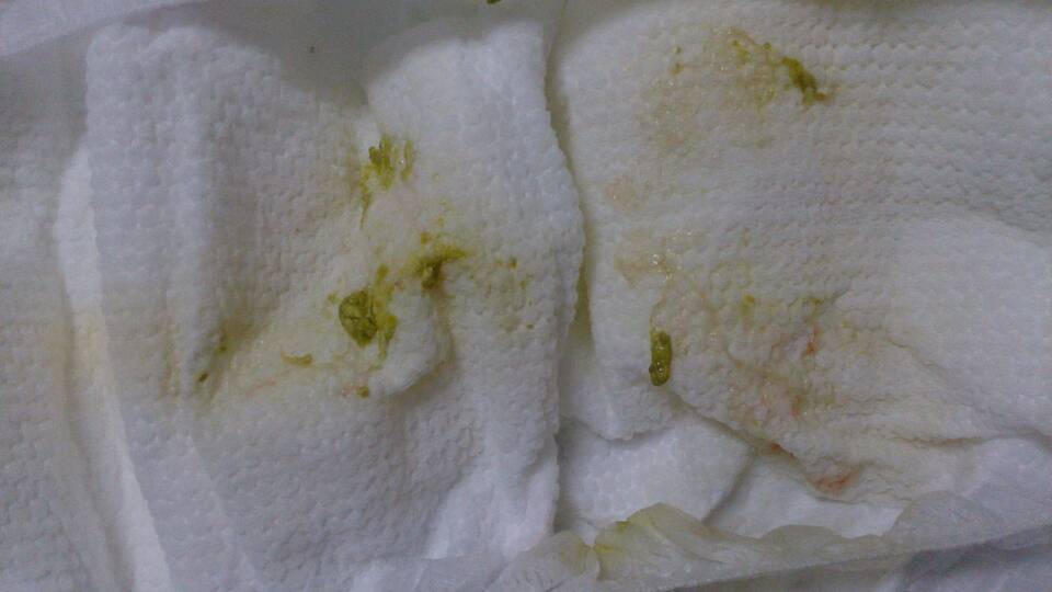我家宝宝今天有点拉肚子,这个是刚刚给他换下来的尿裤,上面的粑粑带有血丝是什么原因?
