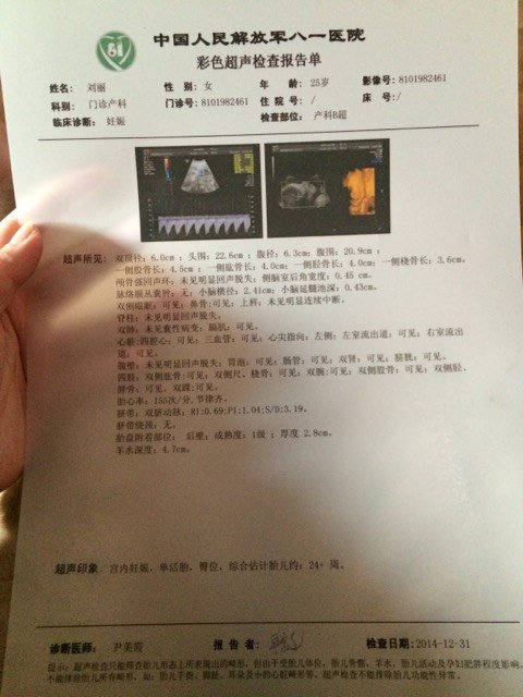 今天做了四维,宝爸进去陪护,医生跟宝爸解释这是宝宝手,这是宝宝脚,看到宝宝脸的时候宝爸来了一句好丑