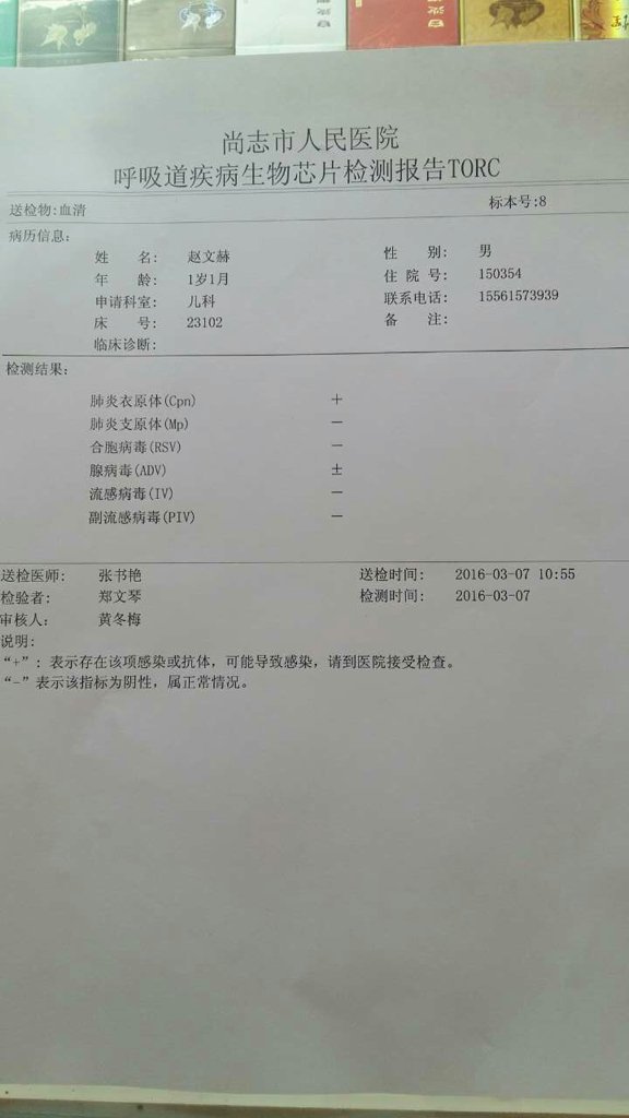 问:宝宝14个月,衣原体阳性,腺病毒阳性,做CT肺炎,打了6天甲泼尼龙,每次22mg,后来才知道这 问:宝宝14个月,衣原体阳性,腺病毒阳性,做CT肺炎,打了6天甲泼尼龙,每次22mg,后来才知道这个是激素药,是不是打多了,会有什么危害? 点击展开 匿名用户 2016-03-23 22:32 为您推荐: 其他回答 正规医院就诊就不需要担心了! 紫夜默默 2016-03-24 11:20 相关问题 肺炎衣原体弱阳性如何治疗 沙眼衣原体感染肺炎新生儿家人可以陪护吗?我的宝宝55天了还要住在无陪护的病房!请问可以转到有陪护的 14个月宝宝发烧肺炎,医生记错了,滴了6天天甲泼尼龙,每天22mg,后来才知道这个是激素药,是不是
