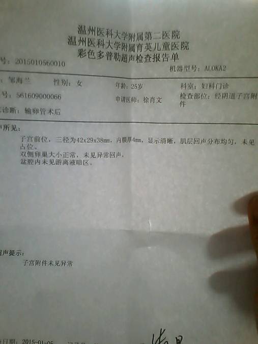 从你的子宫附件B彩结果显示:子宫附件未见异常。因此你可以首先考虑采取自然怀孕的方法,必要时进行夫妻双方生育能力检测,如:精子质量、雌激素、孕激素、输卵管造影等,如果夫妻双方在一起同房两年,仍然不能够怀孕,然后再考虑行试管婴儿怀孕方法治疗。