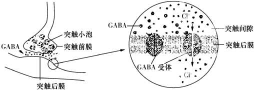 A、突触前膜释放GABA的方式是胞吐(外排),依赖于突触前膜间炼的搁炼脂流动性,A正确;B、GABA属于小分子物队浅质,突触前膜释放GABA的过程说明某些小分子物质也可以通过胞吐方式分泌出细胞,B正确;C、由图可知,GABA受体实际上也是横跨突触后膜的Cl-通道,能与GABA特异性结合,C正确;D、GABA与受体结合后,会导致Cl-内流,进而抑制突触后膜产生动作电位,D错误.故选:D.