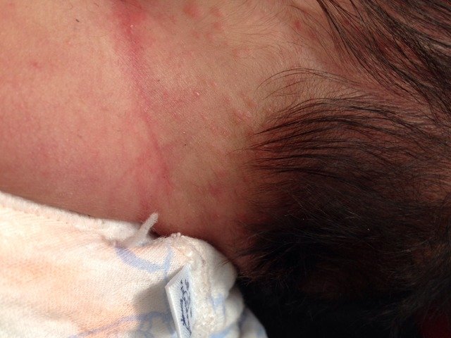 宝宝脖子上胸口长了好多红疙瘩,脑袋上都是,怎么回事,这是什么?怎么引起的?