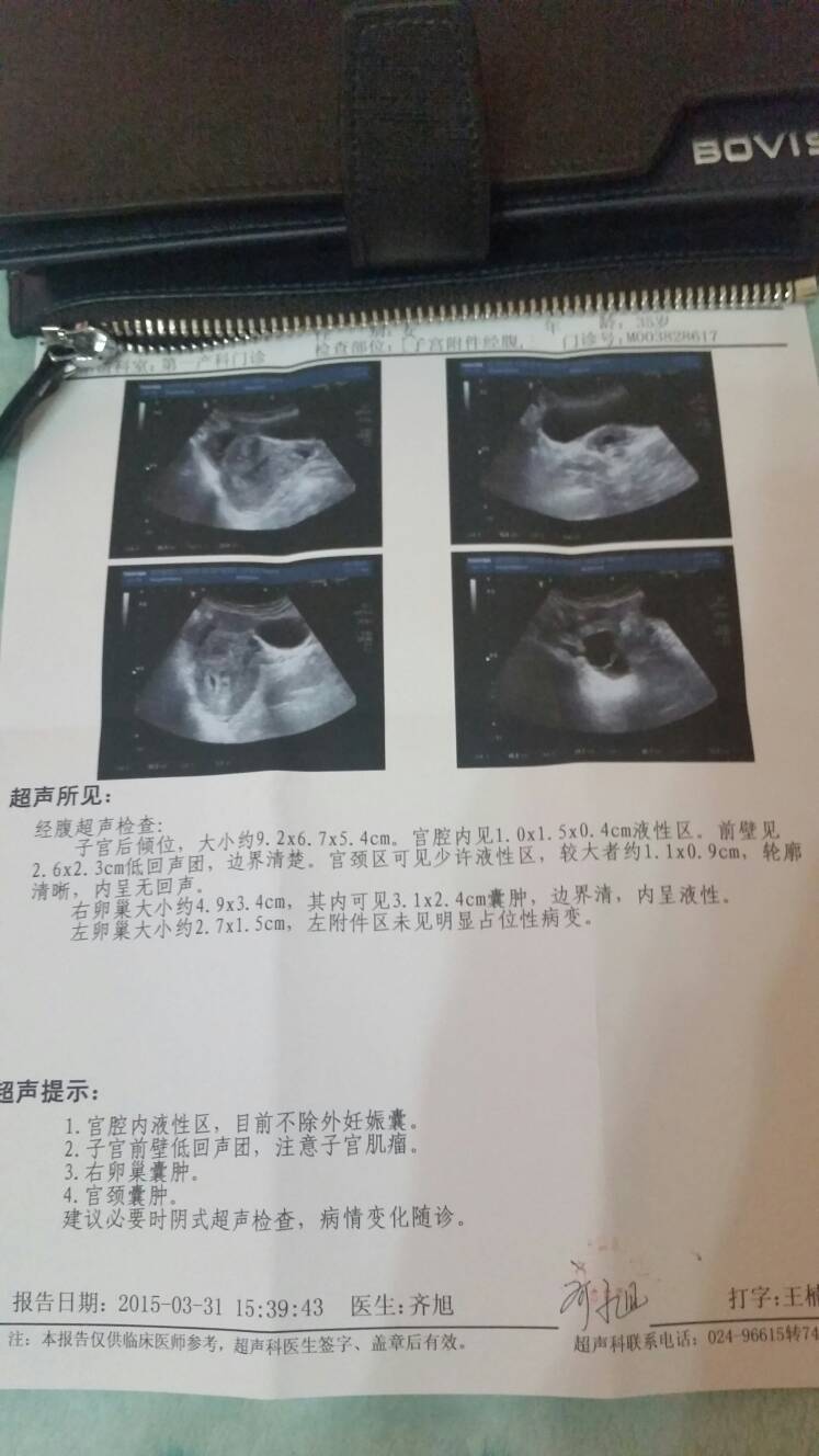 在医院预约做的彩超,可是还没来得及找大夫看,大夫就下班了,患者末次月经2月10号,用验孕棒检测呈阳