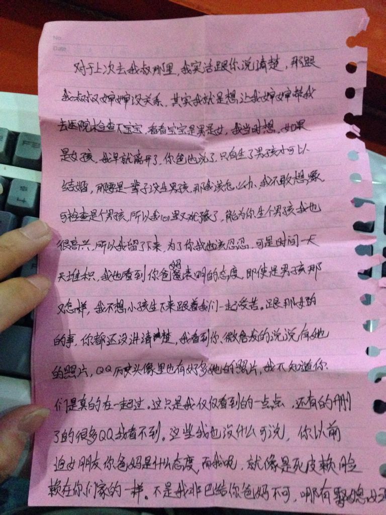 女朋友怀孕6个月,11月5号离家出走,给我留了两张纸条,5号晚上又发了条信息给我,内容是:不要找我