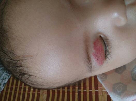 我家宝宝生出来眼皮就有一片红斑,到一个多月的时候凸起,后来看了医生说是血管瘤吃了4个月药,不凸起了