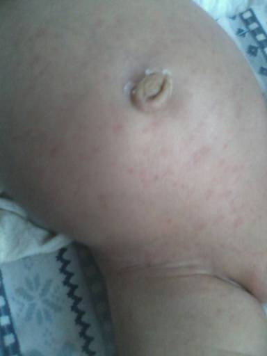 宝宝的图片显示,主要是由湿热引起的痱子,要注意预防感染以免引起炎症,来治疗期间室内要注意避免潮湿,是可以涂抹炉甘石洗剂治疗观察的,或者用藿香正气水兑水给宝宝洗澡,这些都是有效的,在治疗期间,如果是母乳喂养,妈妈要注意不要吃海产品食物,以免影响治疗。
