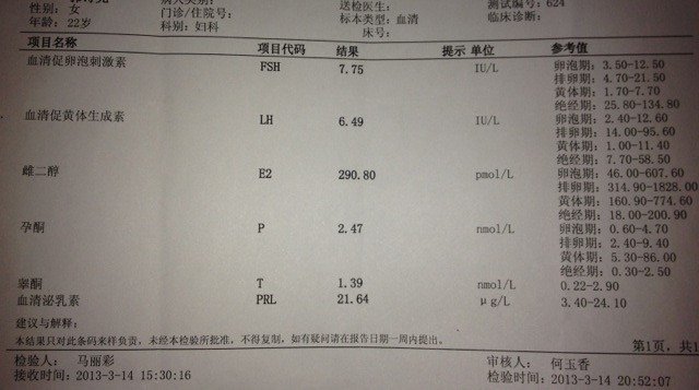请帮忙看下这两张孕激素化验单!本人22岁,未婚 12年下半年月经不调,化验了急速,说是泌乳素高!现在一直在吃中药,前几天又化验了一次!请看下,现在的激素是否正常! 点击展开 匿名用户 2013-03-19 16:03 为您推荐: 其他回答 去医院吧 匿名用户 2013-03-20 13:45 已经在正常范围内了。 匿名用户 2013-03-20 13:36 相关问题 请医生帮忙看下孕激素六项化验单~~ 请帮忙看看孕激素的化验单,多谢!! 请帮我看下这个性孕激素的化验单,是否有问题?
