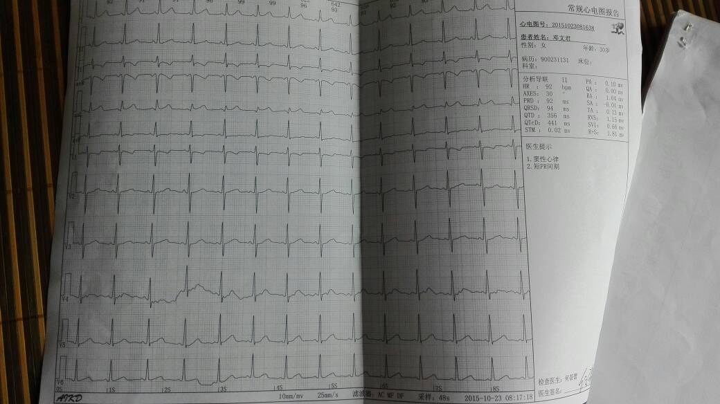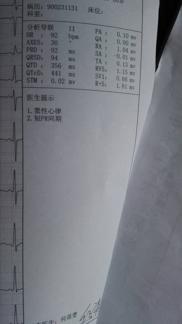 怀孕35周心电图提示窦性心率和短PR间期是什么意识? 点击展开 匿名用户 2015-10-23 12:53 满意回答 你好,像你这种情况,怀孕最纪卫35周,窦性心率是我们正常的心率,而短PR间期在临床上意义不大,建议你顿勒可柴梅以定期复查 cn#BaVBffufuV 2015-10-23 13:15 宝宝知道提示您:回答为网友贡献,仅供参考。 相关问题 怀孕35周心电图出现窦性心率短pr 间期什么意思? 怀孕12周,发烧了 退烧后觉得胸闷 呼吸不上来的感觉 做了心电图,说心率比较快 医生说可以吃点头孢 孕11周!最近老是胸闷气短今天去检查医生让做心电图!怀孕可以做吗?