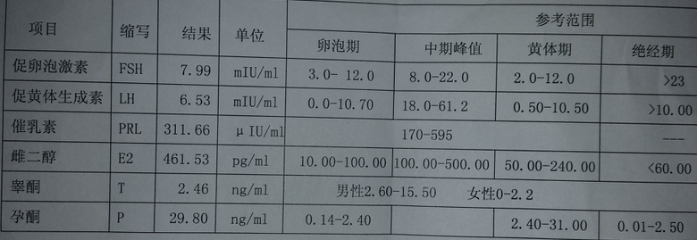 血清内分泌检验单显示 说明什么?卵泡期中期峰值黄体期什么意思? 点击展开 匿名用户 2013-10-16 21:40 满意回答 如果是月经第3天检测的,睾酮和雌二醇偏高,请补充检测日期。 苦绿蝶_ODkL 2013-10-26 15:03 宝宝知道提示您:回答为网友贡献,仅供参考。 相关问题 您好 我月经后12天查的性激素六项 化验单是的参考值分卵泡期中期峰值黄体期和绝经期请问 怀孕9周,内分泌检查睾酮3 71,血清睾酮106 催乳素4 昨天的三样检查结果出来了,血清中有一项医生要我去检查下内分泌科,是查下甲状…不会有甲状吧!其它都