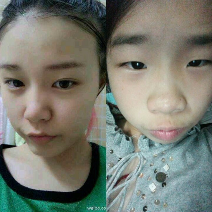不像……左边的五官清秀要好看一些 右边的 五官一般 眉毛分得太开…鼻梁不挺 鼻括也太大 最主要的一个单眼皮一个双眼皮 一个看起来像18岁一个看起来像11.2岁…实在无法比较……