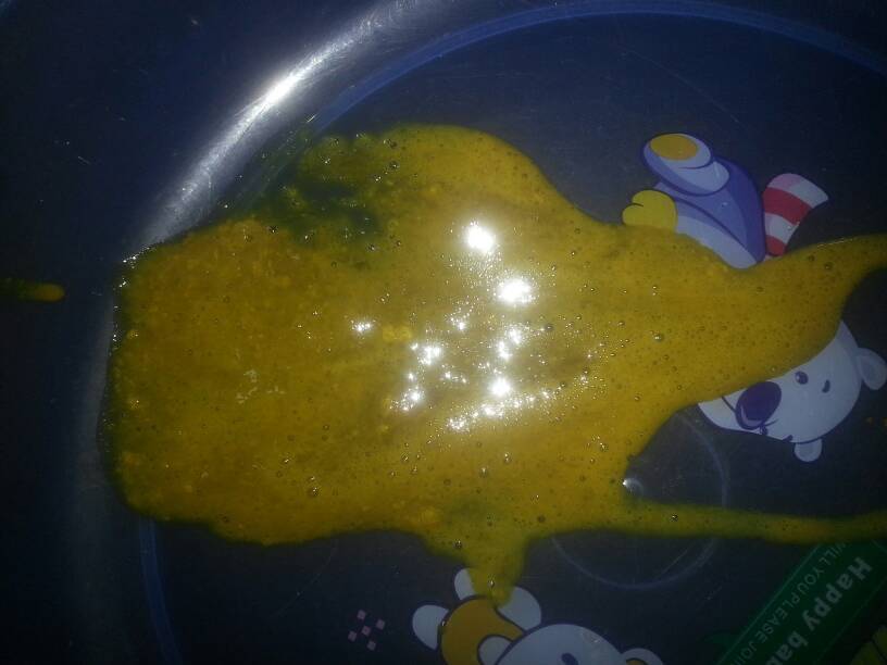 我的纯母乳喂养的,宝宝两天不拉大便,看着他努力的想拉却拉不出来,只能用开塞露了 拉出来的大便是这样