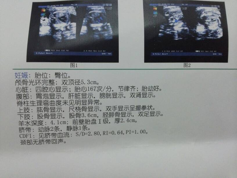 医生帮我看看我照的四维、宝宝健康吗? 医生帮我看看我照的四维、宝宝健康吗? 点击展开 琥珀妈 2014-09-27 20:58 为您推荐: 其他回答 如果是每次胎心检查都是这么快就是缺氧,如果就这一次就是你紧张,运动的 埃斯蒂尔 2014-09-28 12:22 您好,您的四维彩超检查结果是正常的,没有发现孩子发育有畸形。 匿名用户 2014-09-28 02:57 胎心太快了,正常是120~160, 埃斯蒂尔 2014-09-27 23:47 如果宝宝有问题医生给说的 请叫我雷锋妈 2014-09-27 23:38 医生没有告诉你吗?应该没有事 爱恨情 2014-09-27 21:51 加载更多 相关问题 四维通过、各位医生和宝妈帮我看看、四维通过是不是代表着宝宝健康啊 帮我看看、这是我5月18号做的检查、医生说孩子很健康、
