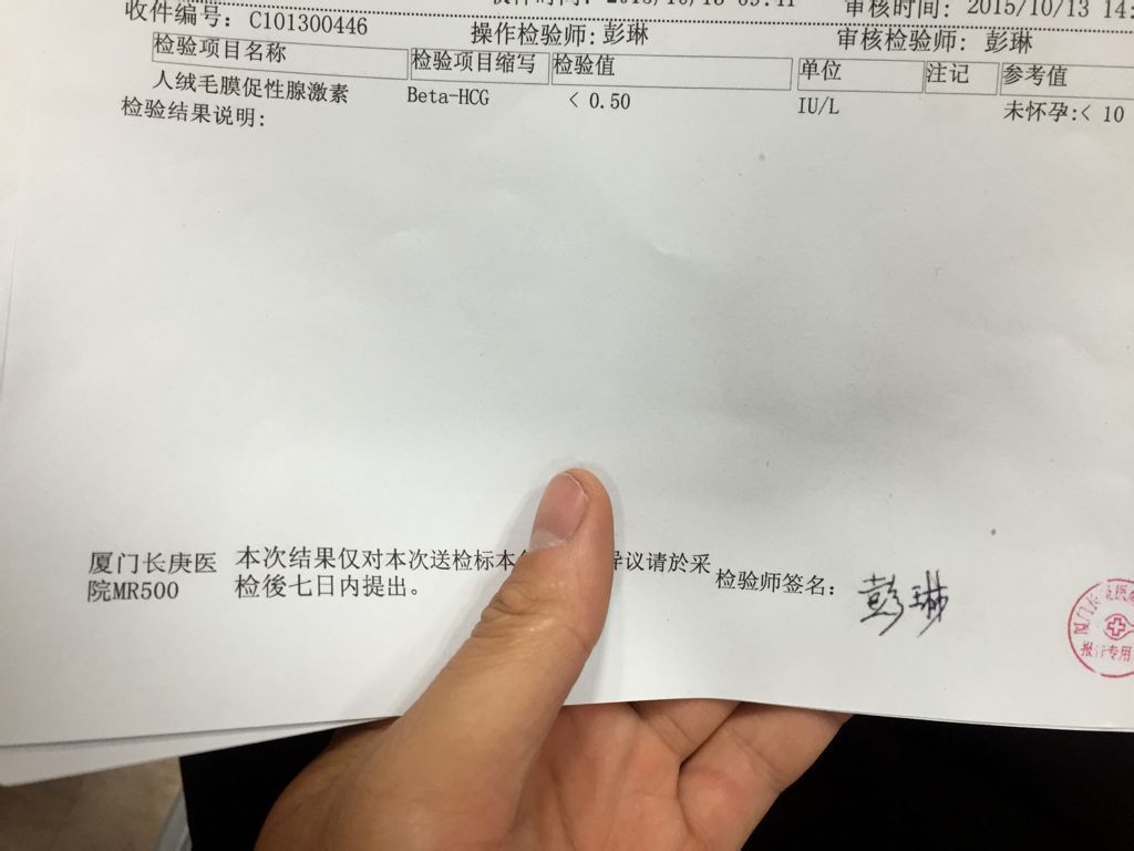 验血报告单下来了,哪位大神们帮我看看 谢谢了我想知道有没有怀孕 点击展开 匿名用户 2015-10-17 09:46 满意回答 根据您的hcg值检查结果来看表现为阴性结果,表明并没有怀孕。 alborada_晨歌 2015-10-17 09:48 宝宝知道提示您:回答为网友贡献,仅供参考。 相关问题 请高人帮我看看宝宝的验血报告单 末次月经11月18号,今天去医院验血了,说孕酮低,开了针和药,能看懂的帮我看看报告单 彩超图片看胎儿性别该怎么看呢?我想知道我怀的是男孩还是女孩?拜托各位大神