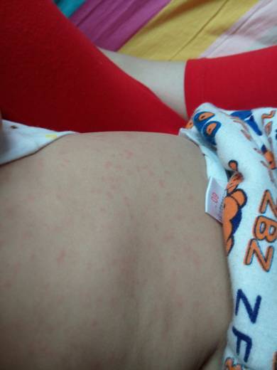 宝宝前两天发烧38度,之后浑身起小红疙瘩,过了两三天后不怎么显了,昨晚上又起来了,应该不痒,孩子不