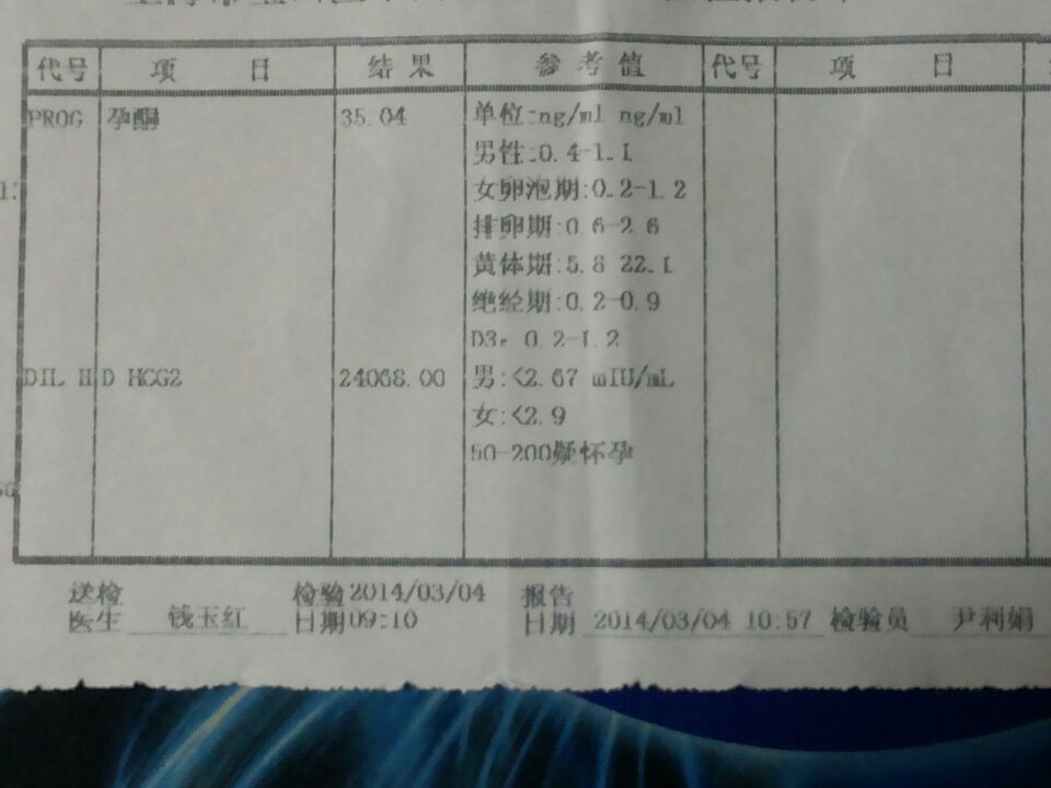 请医生帮我看一下今天孕检的单子,一张B超 一张验血单 有什么问题和需要注意什么麻烦说一下。不胜感激 点击展开 匿名用户 2014-03-06 23:20 为您推荐: 其他回答 病情分析: 你好,根据你提供的HCG来看,提示怀孕的可能性很大。 指导意见: 提示你怀孕的可能性极大,建议两周在复查B超看看是否有妊娠囊。 匿名用户 2014-03-06 23:23 相关问题 前天到医院验血,今天拿了单子是怀孕了,可是医生说明天还要空腹去验血,跟这个单子对一下是不是正常,我 医生,昨天我左小腹和腰有点痛,今天去检查了 从b超单子看,宝宝没问题吧,是正常的吧! 在备孕中,上次月经是阴历七月22,到今天还没来,去医院验血hcg医生说没怀,我还有可能怀孕吗