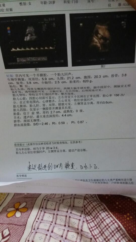 胎儿左心室一枚灶状强回声 左侧肾盂分离 约0.6cm问题大吗? 胎儿左心室一枚灶状强回声 左侧肾盂分离 约0.6cm问题大吗? 点击展开 漠(沫)橦麻麻 2016-01-21 06:48 为您推荐: 其他回答 后期复查,看能不能吸收 叫我彤彤妈妈 2016-01-21 13:28 这样的,放松心情哈,没事的 ̷120 2016-01-21 12:42 后期复查吸收的话就不大 叫我彤彤妈妈 2016-01-21 09:16 不懂这个,, 仲夏夜之星_FvMC 2016-01-21 09:11 问问医生吧, 爱笑的人_CdTP 2016-01-21 09:01 加载更多 相关问题 双肾盂轻度分离左心室灶状强回声 胎儿左心室强回声灶,左右侧肾盂分离 医生,请问:胎儿 左心室灶状强回声,爽肾盂分离 属于什么情况 正常么?