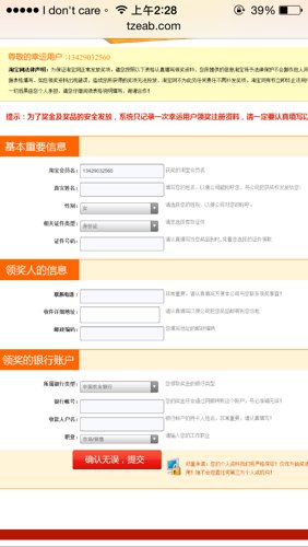 前几天出于好奇填了一个说淘宝搞11周年庆我中了二等奖98000一台苹果笔记本结果填到后面居然要我什