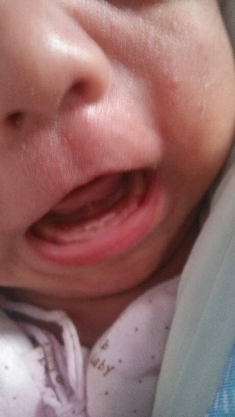 宝妈帮我看看,我家宝宝是扎牙了还是所有的宝宝都是这样?(我家宝宝出生一个月了)急急急