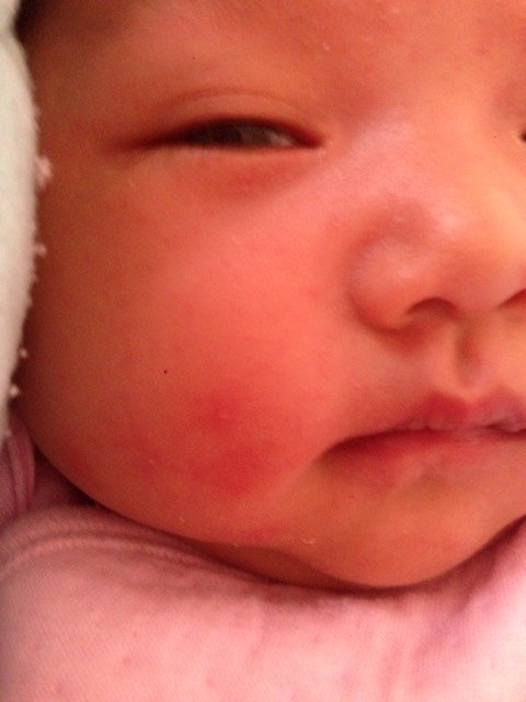 宝宝33天,脸上出现白色小颗粒,有的白色颗粒变成红色的小疙瘩,不知道是什么,谢谢!!