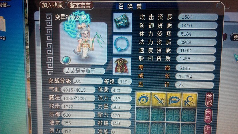 梦幻西游,老区比例100=1400,请问这只宝宝值多少钱,43左右的高连套,一层碎甲刃,满层迅敏