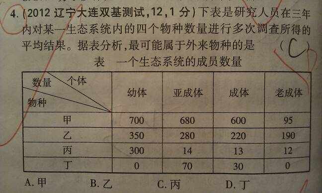 高中生物 为什么不选C??我选C的理由是题中的“三年内”,应该生好多个宝宝呀? 点击展开 匿名用户 2013-12-30 23:11 满意回答 题目说最可能嘛 匿名用户 2013-12-30 23:13 宝宝知道提示您:回答为网友贡献,仅供参考。 为您推荐: 其他回答 因为如果不是外来物种肯定会有幼体存在 匿名用户 2013-12-30 23:14 相关问题 高中生物成熟哺乳动物红细胞有没有全能性 高中生物书上的黑人小孩 高中生物求解释为什么患病男孩与男孩患病不同