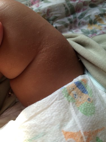 宝宝三个月,大腿上有好多小疙瘩像鸡皮疙瘩的那种,也不红 请问这个是湿疹啊,还是说天气干燥引起的?怎