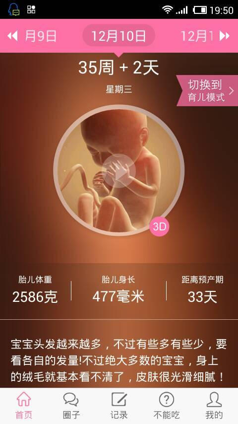 双顶径约87mm,头围326mm,腹围350mm,股骨长约69mm,肱骨长约64mm,35周加2天 双顶径约87mm,头围326mm,腹围350mm,股骨长约69mm,肱骨长约64mm,35周加2天,好顺产吗? 点击展开 匿名用户 2014-12-10 19:50 满意回答 好着呢,头不是太大,我生的时候双顶径是95也是顺产,放心吧 母婴用户495439508 2014-12-10 20:00 宝宝知道提示您:回答为网友贡献,仅供参考。 相关问题 39孕周,双顶径89mm,头围约326mm,腹围约331mm,股骨长径73mm羊水指数87mm,宝 双顶经约:92mm,头围:320mm,腹围:326mm,股骨长经:69mm,肱骨长约:61mm帮忙 双顶径约87mm,头围约294mm,股骨长约69mm,肱骨长约58mm,能不能看出宝宝多重?