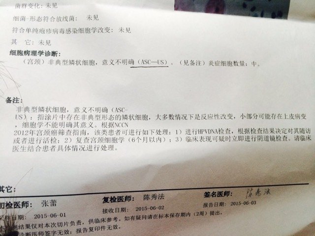 非典型鲮状子细胞,意义不明确(ASC-US)炎症细胞数量:中,医生说怀疑是宫颈癌早期,联系复查确定