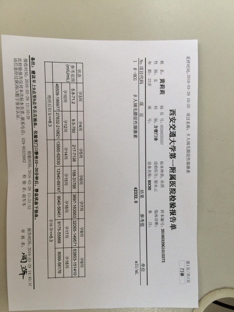 这个结果是怀孕吗,叶酸还原酶是检查是否怀孕吗、结果还没出来,着急呀 这个结果是怀孕吗,叶酸还原酶是检查是否怀孕吗、结果还没出来,着急呀 点击展开 浅笑嫣然~ 2016-03-30 18:18 为您推荐: 其他回答 应该是怀孕了,验血最准了 爱的很温柔💃🏻 2016-03-30 21:30 做个bc,看是不是双胎或者葡萄胎 lovecoffee 2016-03-30 19:32 应该是怀孕了 可儿宝宝1985 2016-03-30 19:10 四万多?是怀孕了,你都没给大夫看结果么? 可儿宝宝1985 2016-03-30 18:25 是的……HCG不是很高! 520LLT1988 2016-03-30 18:25 加载更多 相关问题 基因分型检测(叶酸还原酶)怀孕初期需要做吗?我才怀孕40天能做出来吗? 怀孕期到现在三个月了才吃了一个月的叶酸,对孩子有影响吗?因为我是差不多四十天去医院检查医生才叫我吃 我怀孕初期去医院检查医生给我开的是爱乐维,请问不吃叶酸可以吗?