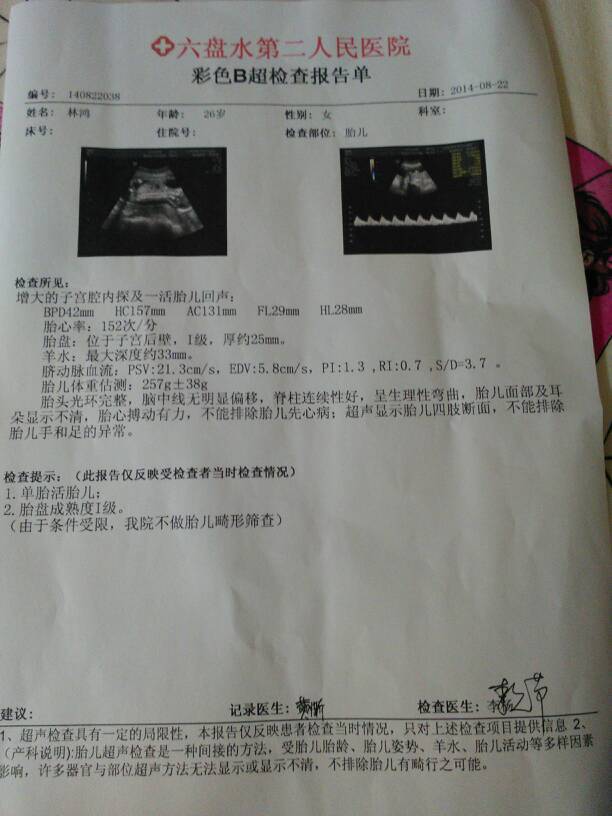 帮我看看b超单上显示宝宝多少周了 帮我看看b超单上显示宝宝多少周了 点击展开 鸿宝 2014-08-29 21:15 为您推荐: 其他回答 那个不是很准确的哦,你自己从末次月经的第一天开始算嘛 倾城之泪 2014-08-29 22:46 你还记得这个时候也别太担心现在还看不到宝宝有多重的自己还是要注意多休息一下会更好的, 生活还在继续66 2014-08-29 21:44 那个不准滴 半橙微兮 2014-08-29 21:16 相关问题 B超上显示宝宝34周,自己算宝宝36周,这是怎么回事 我5月10号末次月经、怎么B超单上才显示16周加6天呢?