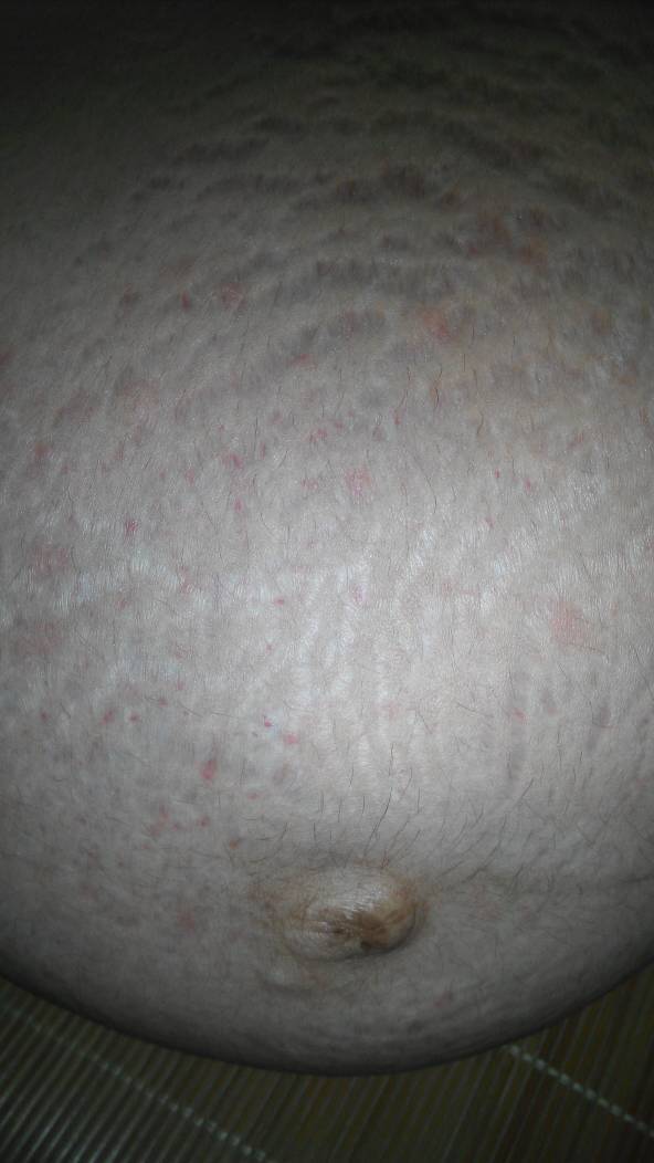 痒不痒啊?痒的话别抓,应该是长妊娠纹了