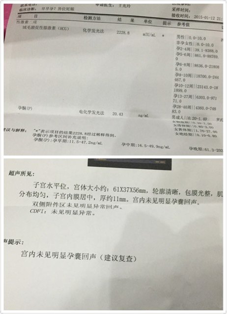 12月8号例假完,1.11孕棒查有怀孕,B超显示没有,小腹有时会痛,抽血检查