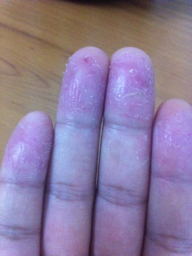 病情分析: 你好,根据你描述的情况多考虑是有真菌感染或者缺乏维生素引起的,建议积极对症治疗就可以了。 指导意见: 建议在医生的指导下局部涂抹尿素软膏和咪康唑来做调节治疗,同时服用多维元素片做治疗,治疗期间注意适当的多吃一些新鲜的蔬菜水果,避免吃辛辣刺激性的食物为宜。