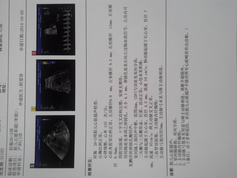 今天去给宝宝做了个胎儿心脏检查,报告出来都中午了,由于是国庆,医院只上上午的班下午休息,还未能问到