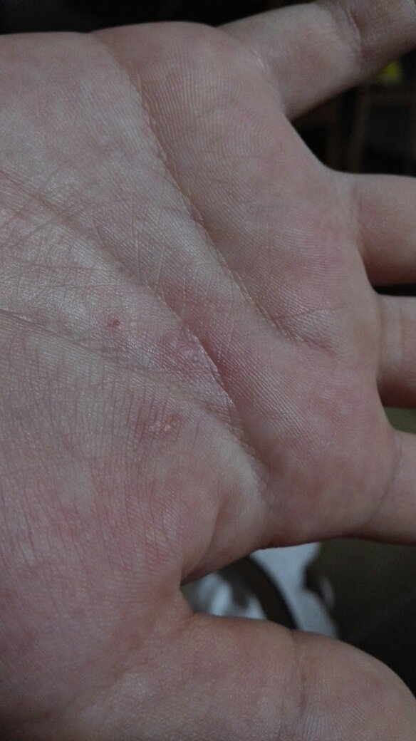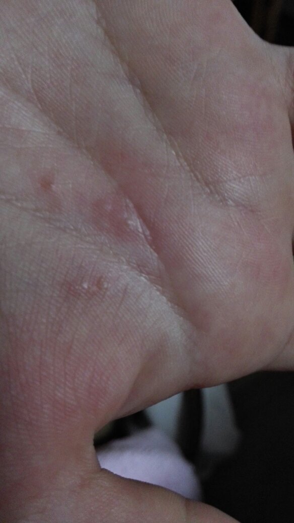 13岁小孩手掌起小点,请问什么原因?谢谢! 点击展开 匿名用户 2016-07-08 21:19 满意回答 您好,考虑为水疱疹,水疱疹的治疗原则为抗病毒,消毫剪它炎止痛和防止继发感染。建议局部外用5%疱疹净二甲基亚砜溶液(用于皮肤疱疹)玻铜等,祝次抹早日康复! 张颖8818 2016-07-10 11:43 宝宝知道提示您:回答为网友贡献,仅供参考。 相关问题 6岁小孩双手掌有红色小点是什么原因 3岁小孩脸上连续一个月发红色小点,不痛不痒,但是有一些凸起,连耳朵,眼皮也要发,身上没有,有时候手 三岁小孩的手掌变红变肿还痒请问为