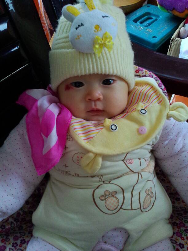 眼角那块疤是宝宝半个月的时候长的,现在三个月了还没好,能帮我看看是怎么回事么