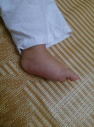 宝宝生出来的时候一只脚底比另外一只厚,当时没有太在意,以为会小下去,现在现在五个多月了,还是这样