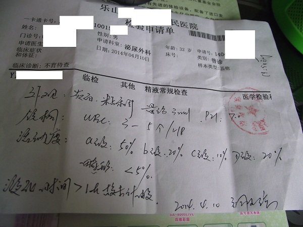 我计划生小孩,今天去做了个精液常规检查,如下,请问正常不? 点击展开 匿名用户 2014-04-10 11:56 为您推荐: 其他回答 病情分析: 你这样的检查问题不大,a_b的级别是不要紧的,畸形率也是正常的精子的量,精液的量正常 指导意见: 只是白细胞有点高,应注意查一下尿,前列腺有无异常的炎症,应注意合理的多喝水,多运动一下,这样的精子怀孕问题不大 匿名用户 2014-04-10 12:12 相关问题 最近想生小孩,做了个精液常规,请问我的检查结果正常吗? 我想生小孩 可是和老婆备孕了半年没有消息 今天去查了下精液 精液报告单,能生小孩的机率有多大